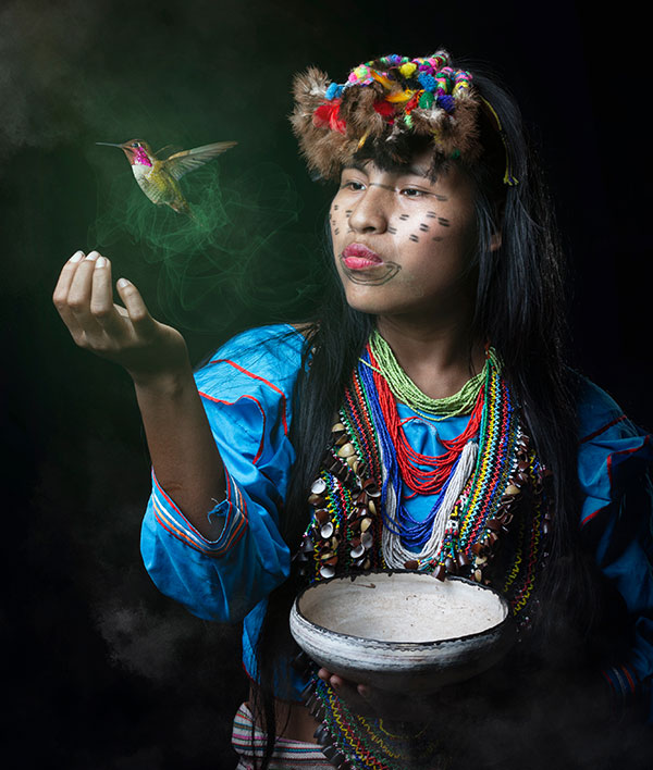 Fotos con la vestimenta del chamanes peruano del tribu Shipibos